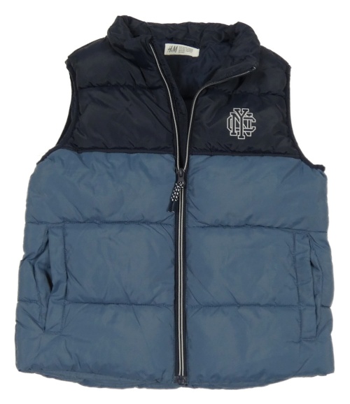 Tmavomodro-modrá šušťáková zateplená vesta s potlačou H&M