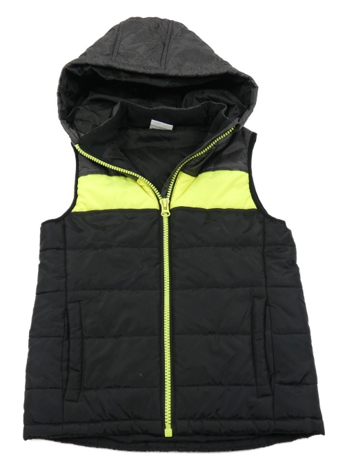Čierno-sivo-limetková šušťáková zateplená vesta s kapucňou Yigga