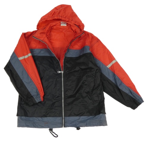 Červeno-čierna šušťáková jarná bunda s kapucňou