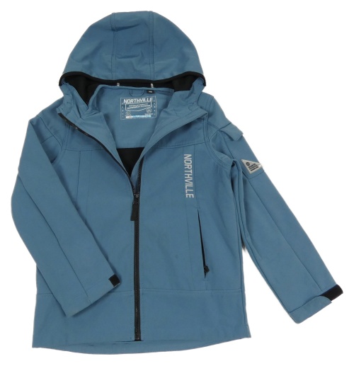 Modrá softshellová bunda s nápisom a kapucňou Northville