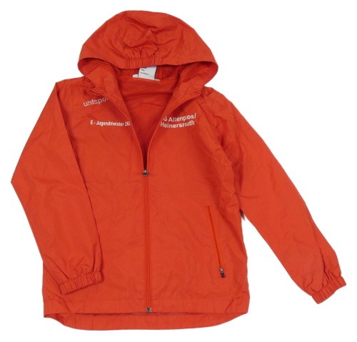 Červená šušťáková športová bunda s nápismi a kapucňou UHLsport