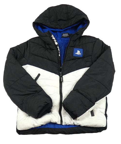 Čierno-biela šušťáková zimná bunda s nášivkou a kapucí - PlayStation Primark
