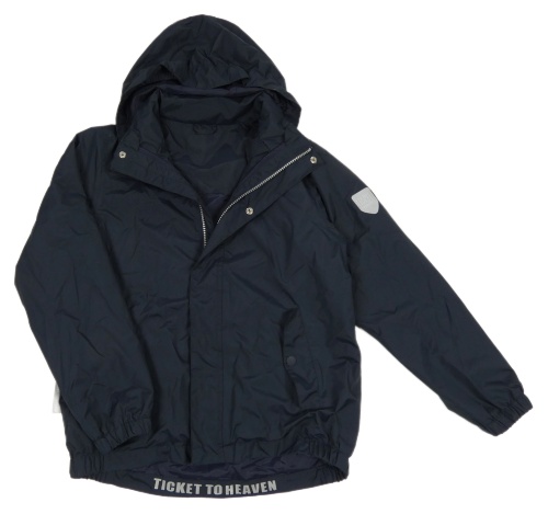 Tmavomodrá šušťáková jesenná bunda s odopínacíá kapucňou