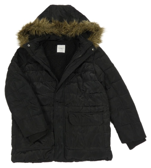 Čierna šušťáková zimná bunda s kapucňou s kožešinou Sinsay