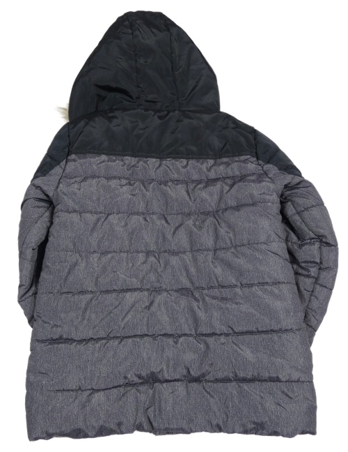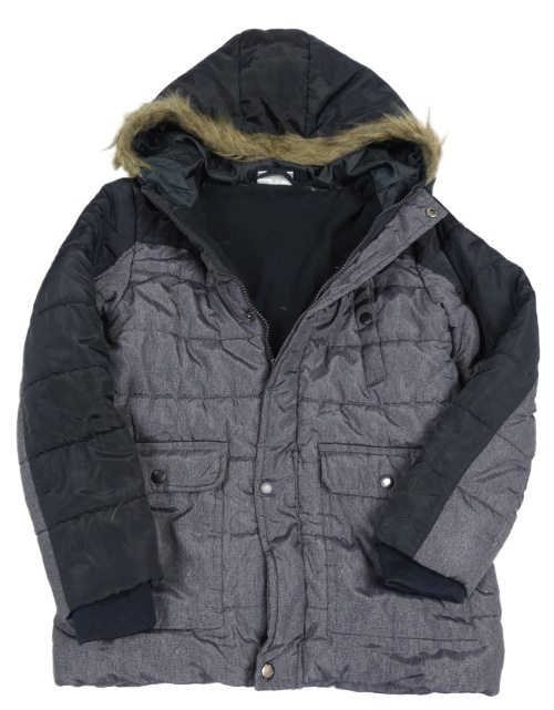 Sivo-čierna šušťáková zimná bunda s kapucňou s kožešinou