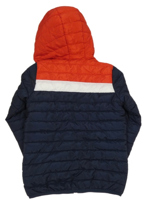• Tmavomodro-bielo-červená prešívaná šušťáková zimná bunda s nášivkou a kapucňou JACK&JONES