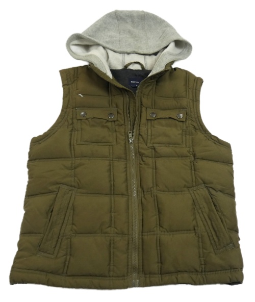 Tmavokhaki prešívaná šušťáková zateplená vesta s kapucňou GAP