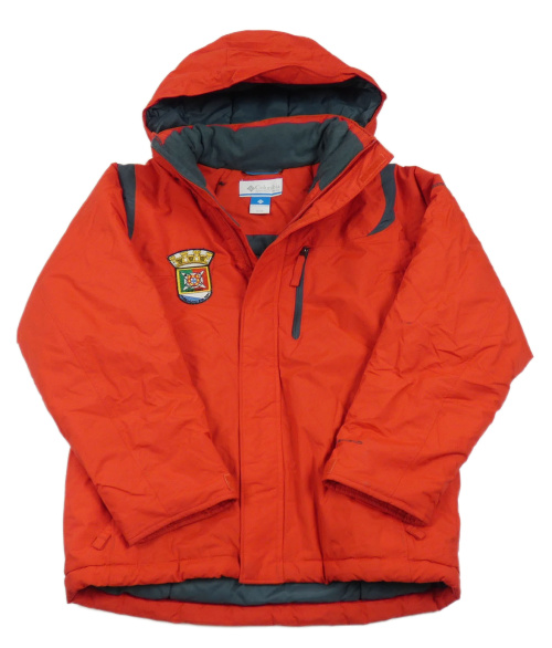 Červená šušťáková funkčná zimná bunda s výšivkou a kapucňou Columbia