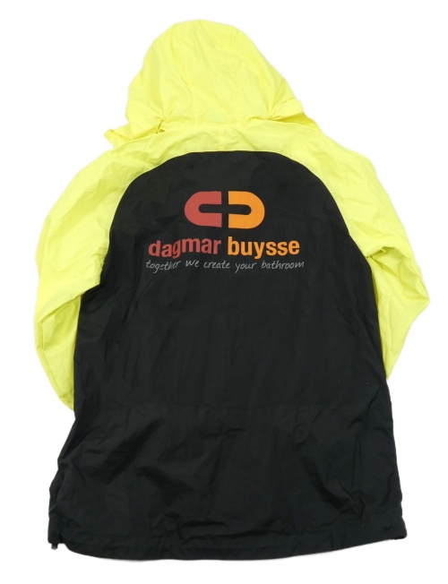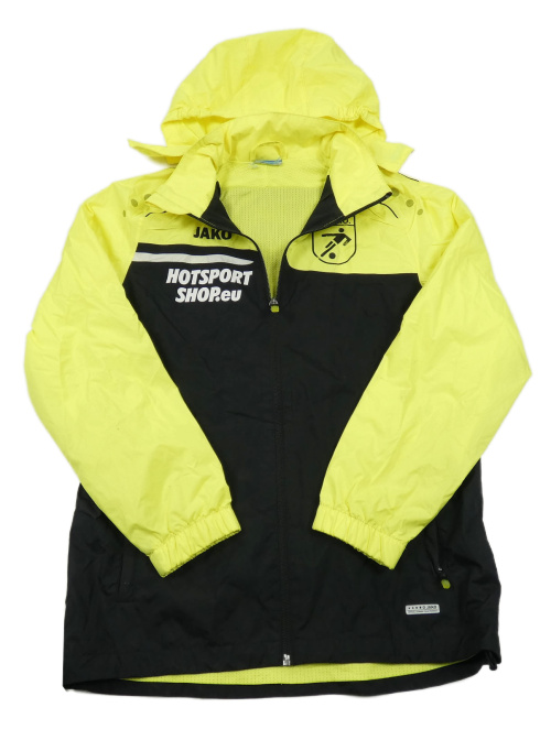 • Čierno-kriklavoě žltá šušťáková športová bunda so znakom a ukrývací kapucňou JAKO