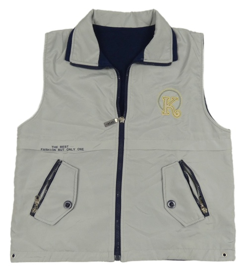 Svetlosivá šušťáková zateplená vesta s písmenem