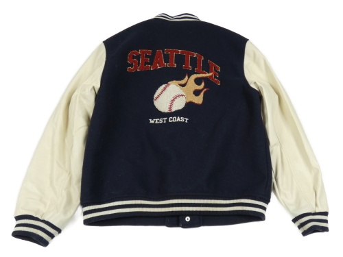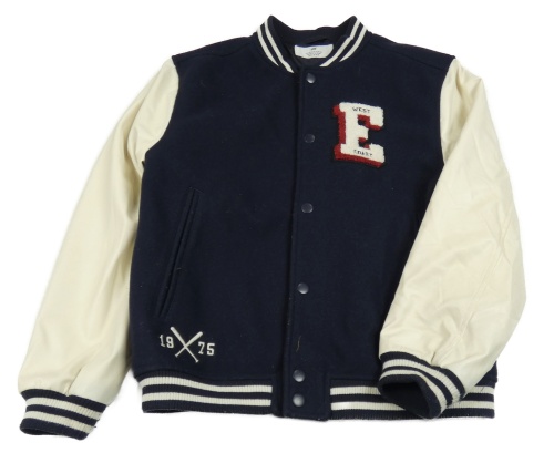 Tmavomodro-smotanová flaušovo/koženková baseballová bunda s písmenkom a míčkem a pruhmi H&M