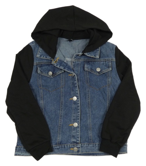 Modro-čierna rifľová bunda s teplákovymi rukávy a kapucňou Shein