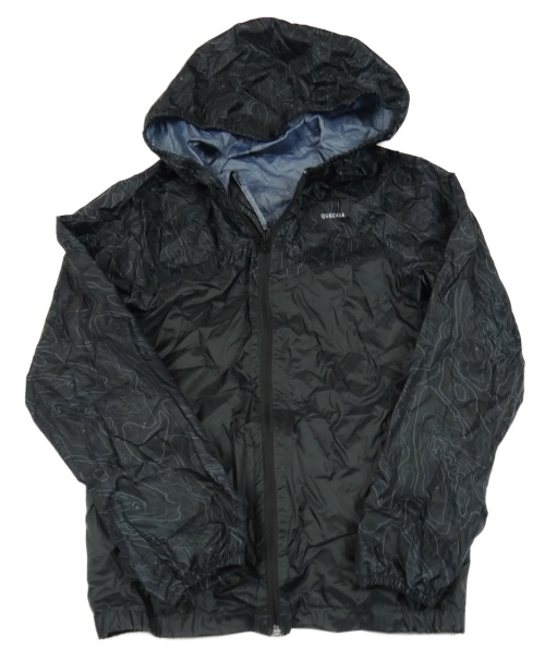 Čierna šušťáková nepromokavá funkčná bunda so vzorom a kapucňou Quechua