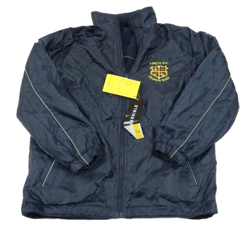 • Nové - tmavomodrá kockovaná šušťáková jarná obojstranná bunda s erbem a ukrývací kapucňou Deer Park