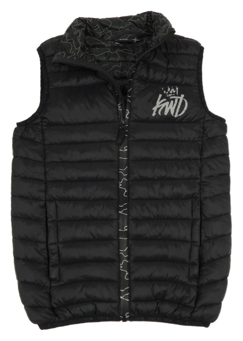 Čierna prešívaná šušťáková zateplená vesta s potlačou KWD