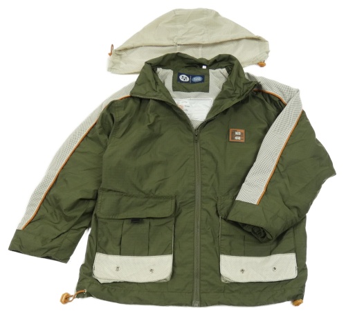 • Tmavokhaki-svetlobéžová kockovaná šušťáková jarná bunda s nášivkou a sieťovinou a ukrývací kapucňou C&A