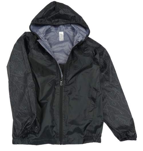 Čierna vzorovaná šušťáková ľahká funkčná bunda s kapucňou Decathlon