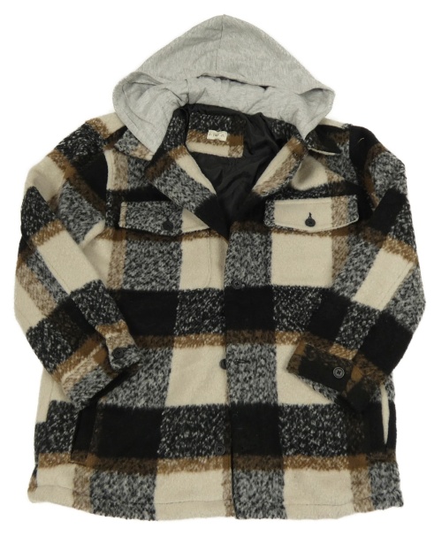 Béžovo-čierno-hnedá kockovaná košeľová bunda s teplákovu kapucňou F&F