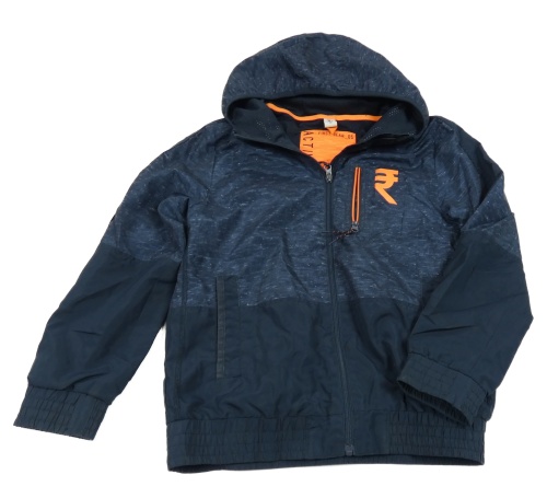 Tmavomodrá melírovaná šušťáková jarná bunda s potlačou a kapucňou Yigga