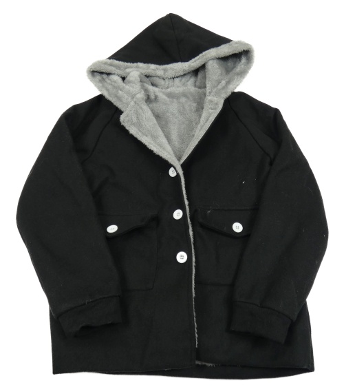 Čierna flaušová zateplená bunda s kapucňou Shein