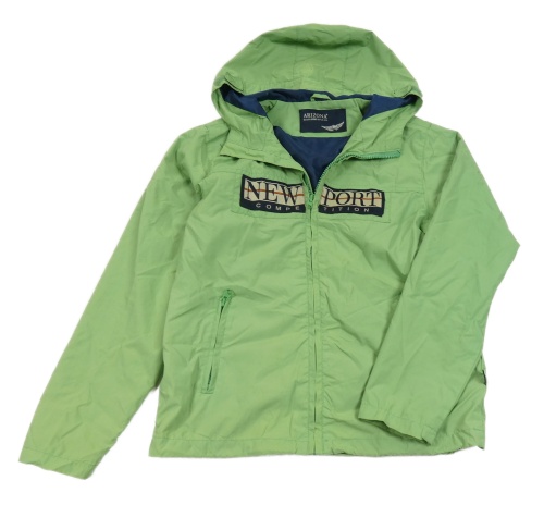 Zelená šušťáková jarná bunda s nápisom a kapucňou