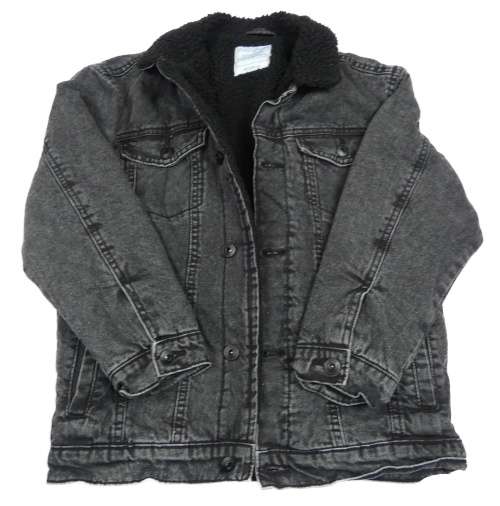 Tmavosivá rifľová zateplená bunda s huňatým golierom Primark