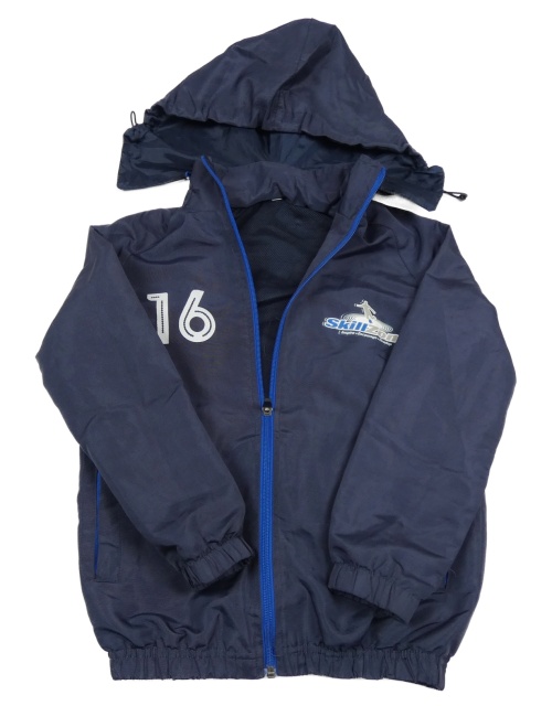 Tmavomodrá šušťáková športová bunda s odopínacíá kapucňou