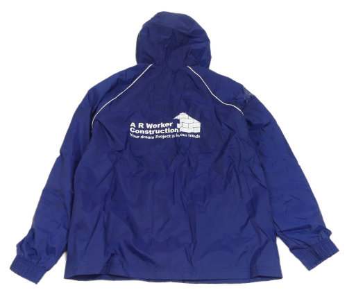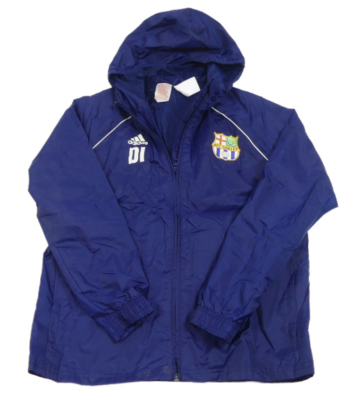Tmavomodrá šušťáková športová bunda s nášivkami a kapucňou Adidas