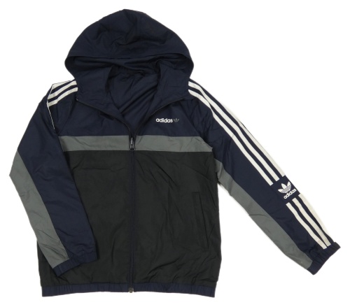 Čierno-tmavomodrá šušťáková jesenná bunda s kapucňou Adidas