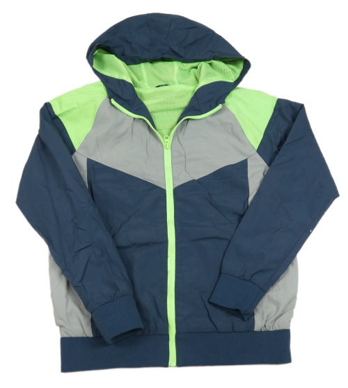 Tmavomodro-sivo-zelená šušťáková jesenná bunda s kapucňou St. Bernard