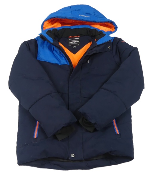 • Tmavomodro-modrá prešívaná šušťáková funkčná zimná lyžiarska bunda s odopínacíá kapucňou ICEPEAK