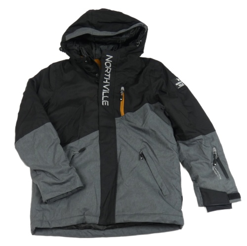 Sivo-čierna šušťáková zimná bunda s logom a kapucňou C&A