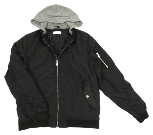 Čierna šušťáková zateplená bunda s teplákovou kapucňou H&M