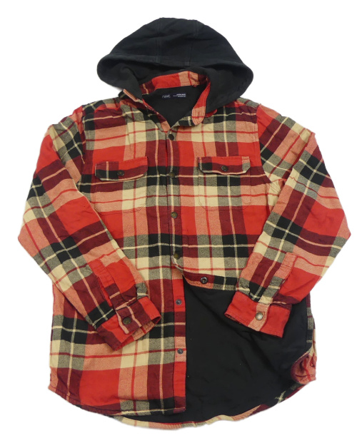 Červeno-béžovo-čierna kockovaná podšitá košeľová bunda s kapucňou Next