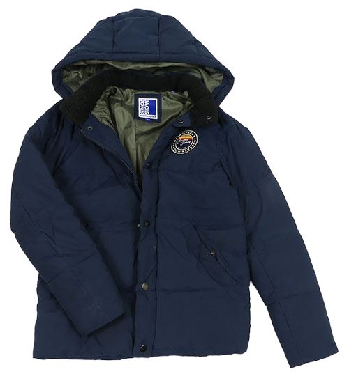 Tmavomodrá šušťáková zimná bunda s logom a kapucňou Jack & Jones