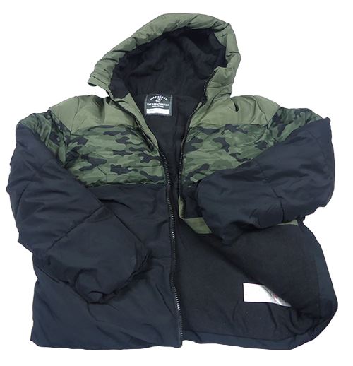 Kaki-čierna šušťáková zimná bunda s army prvky a kapucňou George