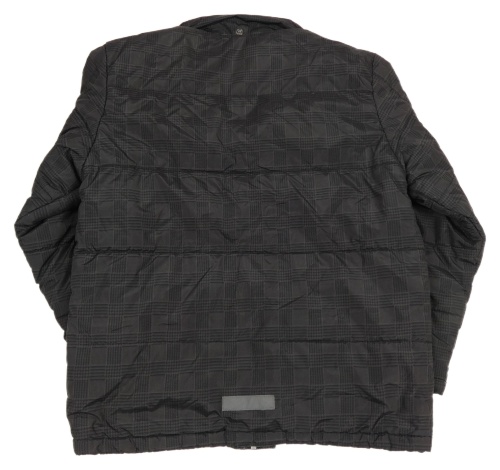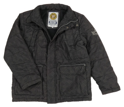 Hnedo-čierna kockovaná šušťáková zateplená bunda s nápisom