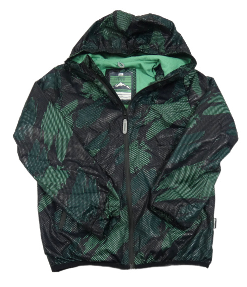 Čierno-zelená vzorovaná šušťáková funkčná jarná bunda s kapucňou WE