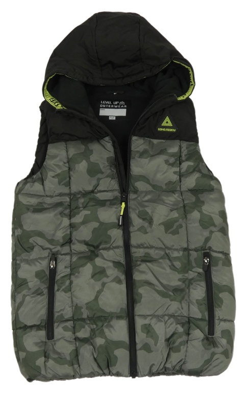 Černo-army šušťáková zateplená vesta s nášivkou a kapucňou F&F