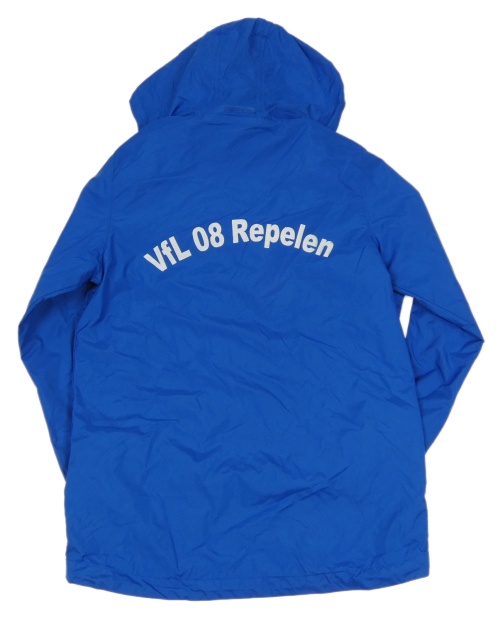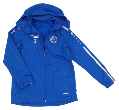 Tmavomodrá šušťáková jarná bunda s výšivkou a kapucňou Jako