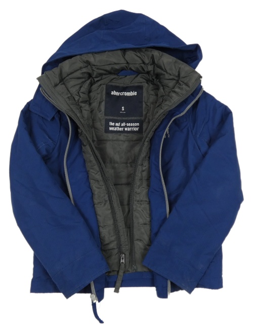 Tmavomodrá šušťáková zateplená bunda s kapucňou Abercrombie&Fitch