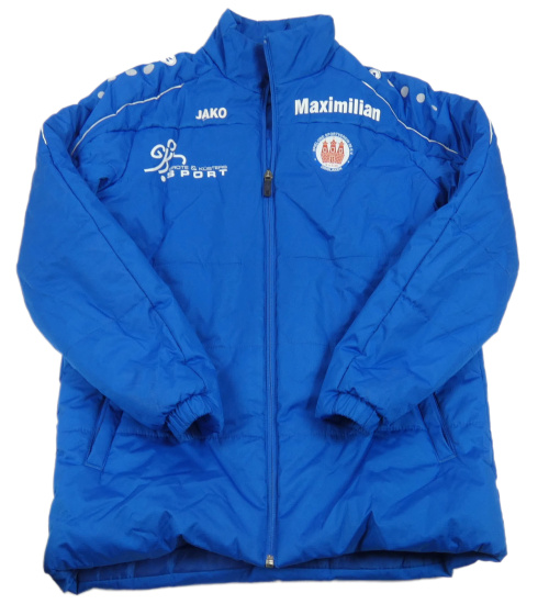 • Cobaltovoě modrá vzorovaná prešívaná šušťáková zimná športová bunda so znakom JAKO