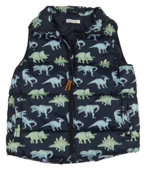 Tmavomodrá prešívaná šušťáková zateplená vesta s dinosaurami H&M