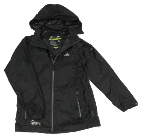 Čierna funkčná šušťáková nepromokavá bunda s ukrývací kapucňou Trespass