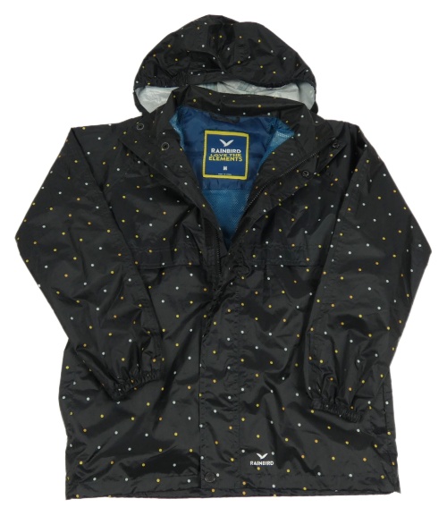 Čierna šušťáková jarná bunda s bodkami a kapucňou Rainbird