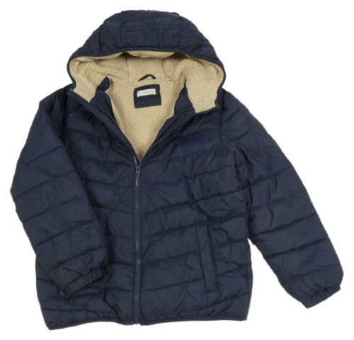 Tmavomodrá šušťáková prešívaná zateplená bunda s kapucňou Mango