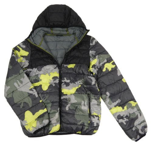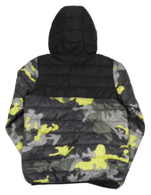 Sivo-limetovo-čierna army šušťáková prešívaná zateplená bunda s kapucňou Next