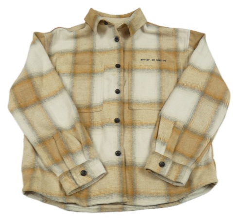 Bielo-smetanovo-okrová kockovaná košeľová bunda s nápisom Zara