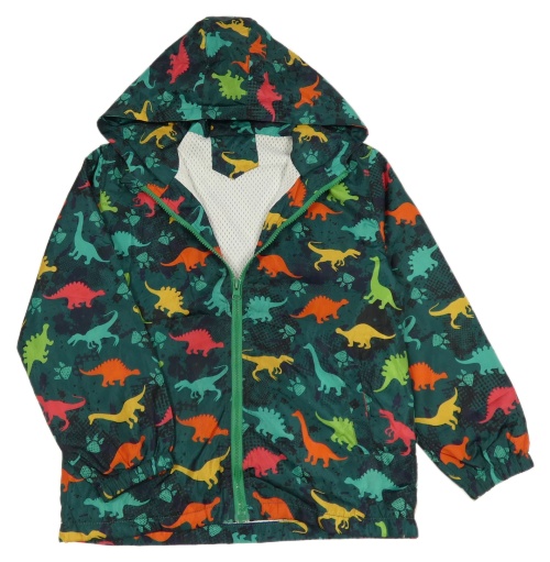 Zeleno-čierna šušťáková jarná bunda s dinosaurami a kapucňou