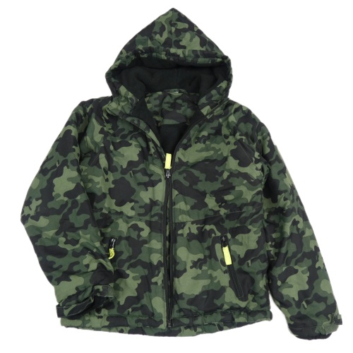 Kaki-čierna army šušťáková zimná bunda s kapucňou